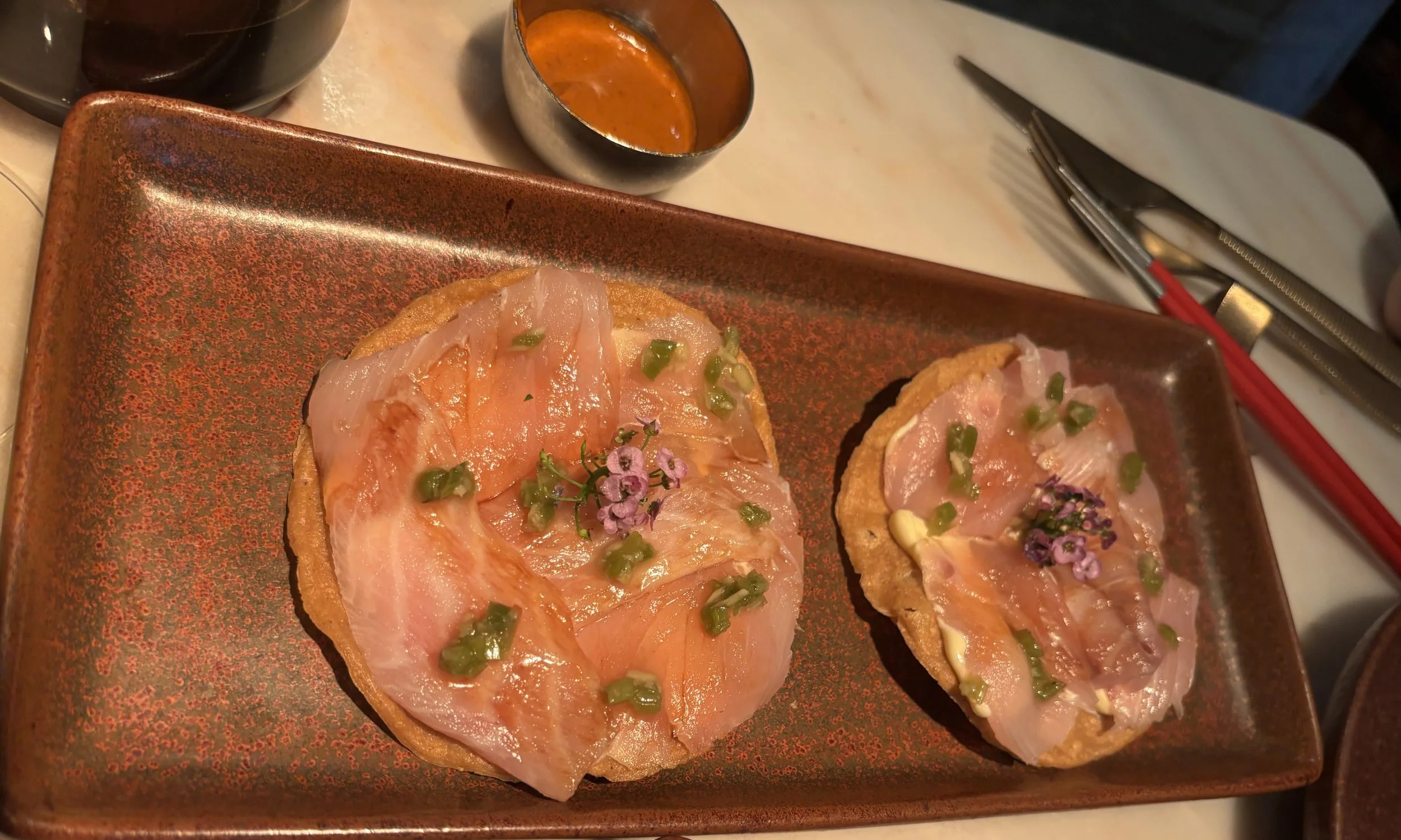 The ambiance is a playful mix of Mexican and Japanese influences, creating a unique and vibrant atmosphere. Just a heads-up: the service is on the quicker side, so this is a great spot for amazing food, but not ideal if you're looking to linger over a long, slow dinner. Our bill for two came to around €160.